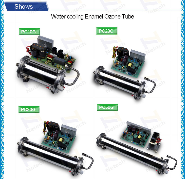 المياه المبردة لأقطاب الداخلية والخارجية، فعالية منع ارتفاع درجة الحرارة ارتفاع عند الأنبوب والتفريغ، لضمان الانتاج تركيز عال الأوزون.