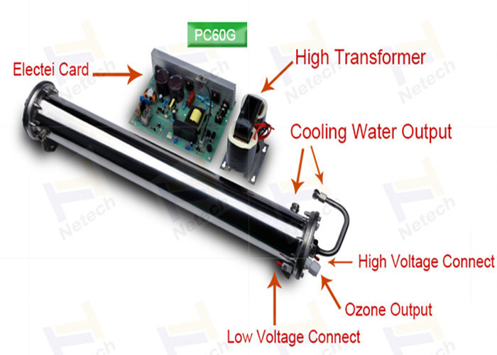 2. الماء المبرد للأقطاب الكهربائية الداخلية والخارجية ، يمنع بشكل فعال ارتفاع درجة الحرارة العالية عند تفريغ الأنبوب ، لضمان إنتاج عالي لتركيز الأوزون.